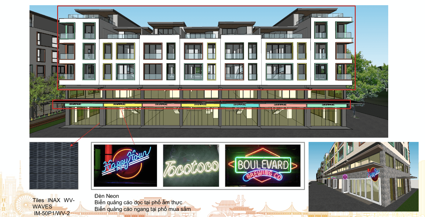 Thể hiện mặt ngoài shophouse